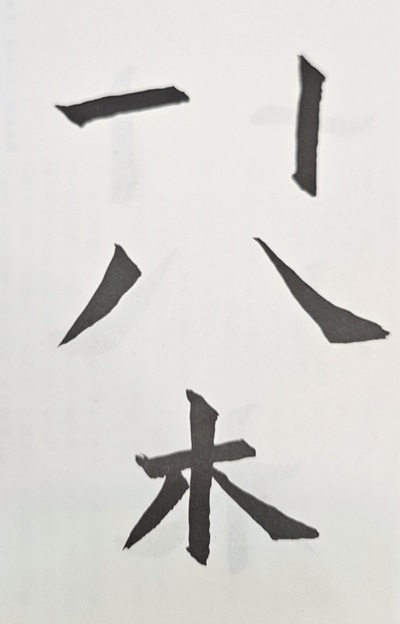 - 欹側奇險:反傳統的橫平堅直的靜態平行,而是大膽追求字勢傾斜,再傾斜中造而破險,讓筆畫間呈動態平行。